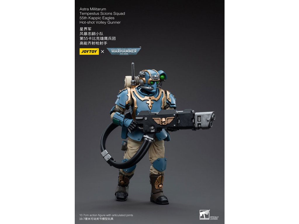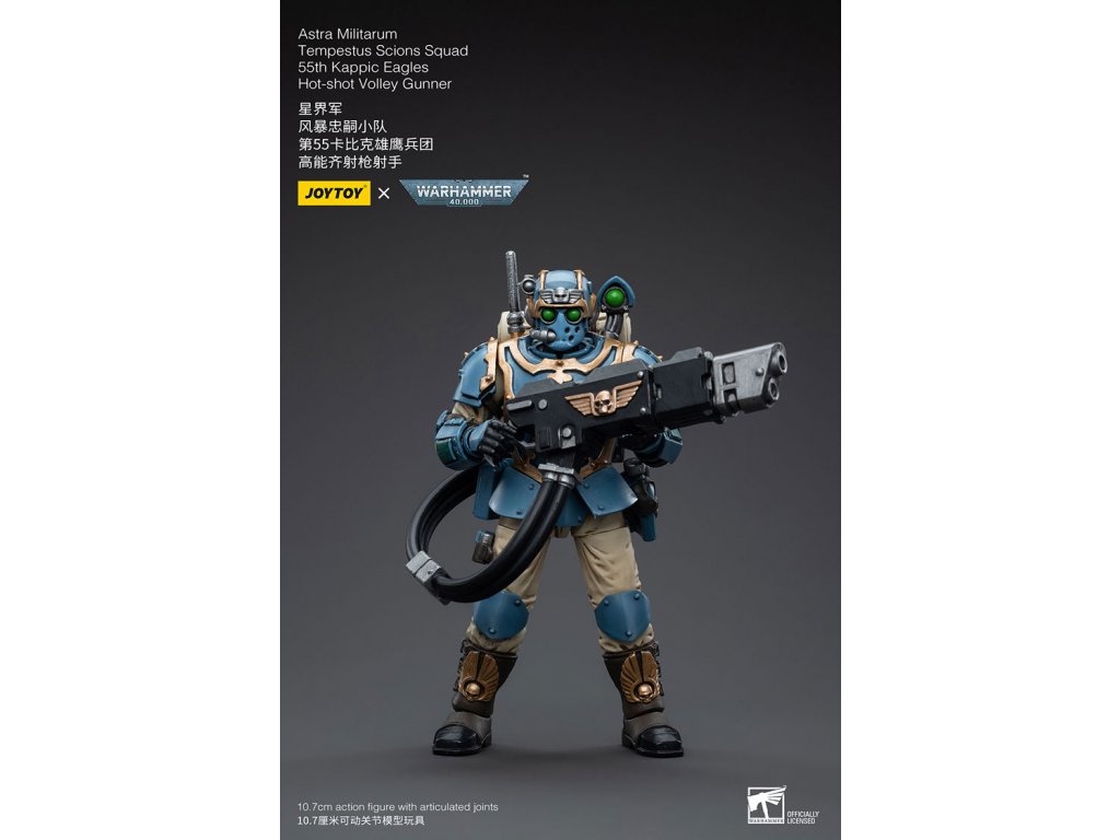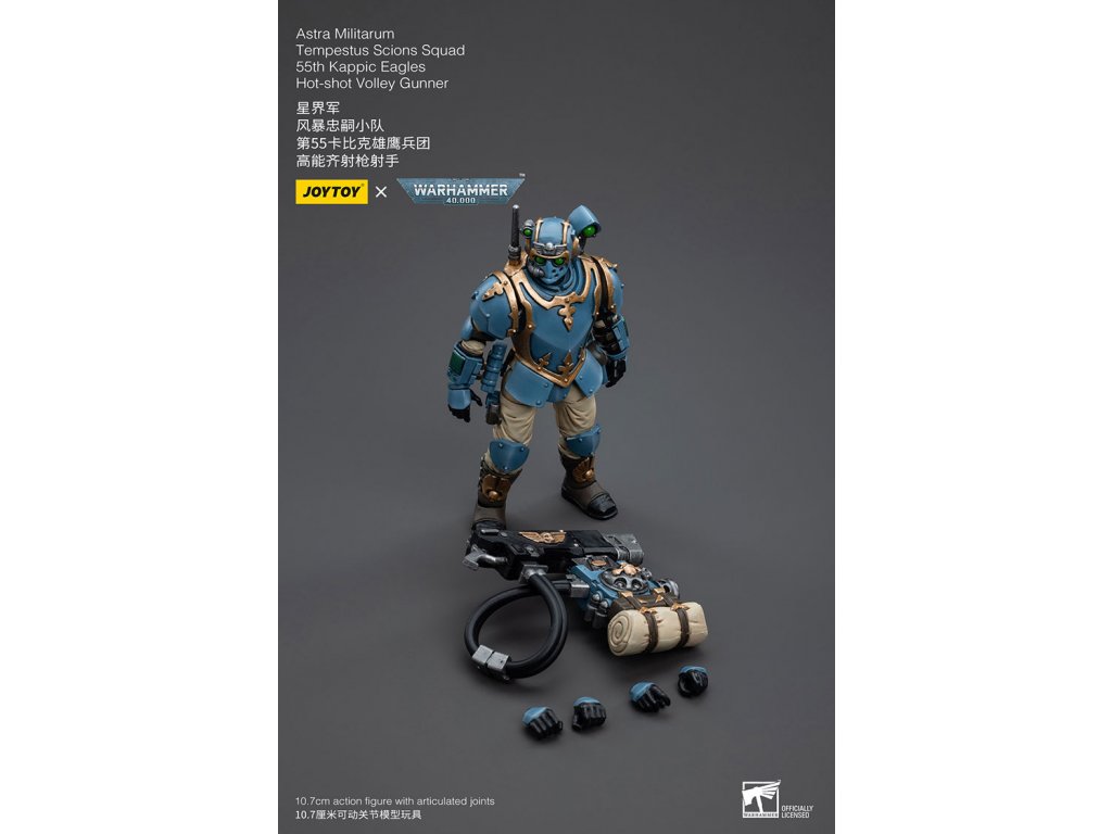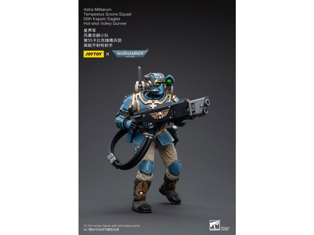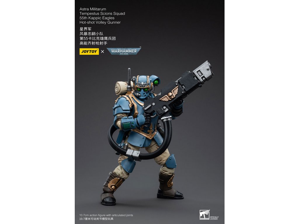 Připravte se na elitní úderné jednotky s přesností a palebnou silou jednotky Astra Militarum Tempestus Scions Squad 55th Kappic Eagles Hot-shot Volley Gunner. Tato precizně propracovaná figurka Joy Toy Action Figure 1:18 Warhammer 40K oživuje specializované síly Imperiální gardy a představuje Hot-shot Volley Gunnera z význačného oddílu 55th Kappic Eagles.