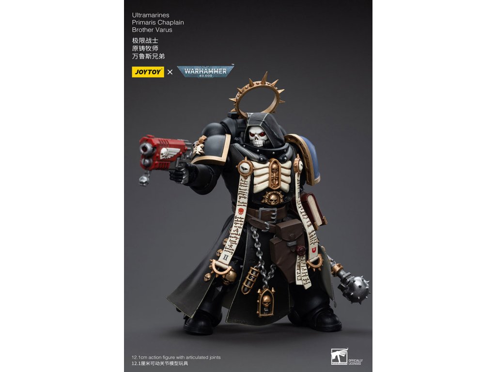 Popis: S naší figurkou v měřítku 1:18, která představuje váženého kaplana Primaris bratra Varuse, vstoupíte do posvátné říše Ultramarines. Tento sběratelský kousek vystihuje neochvějnou víru a bojovou zdatnost kapituly Ultramarines - od úctu vzbuzující zbroje Primaris až po posvátné Crozius Arcanum.