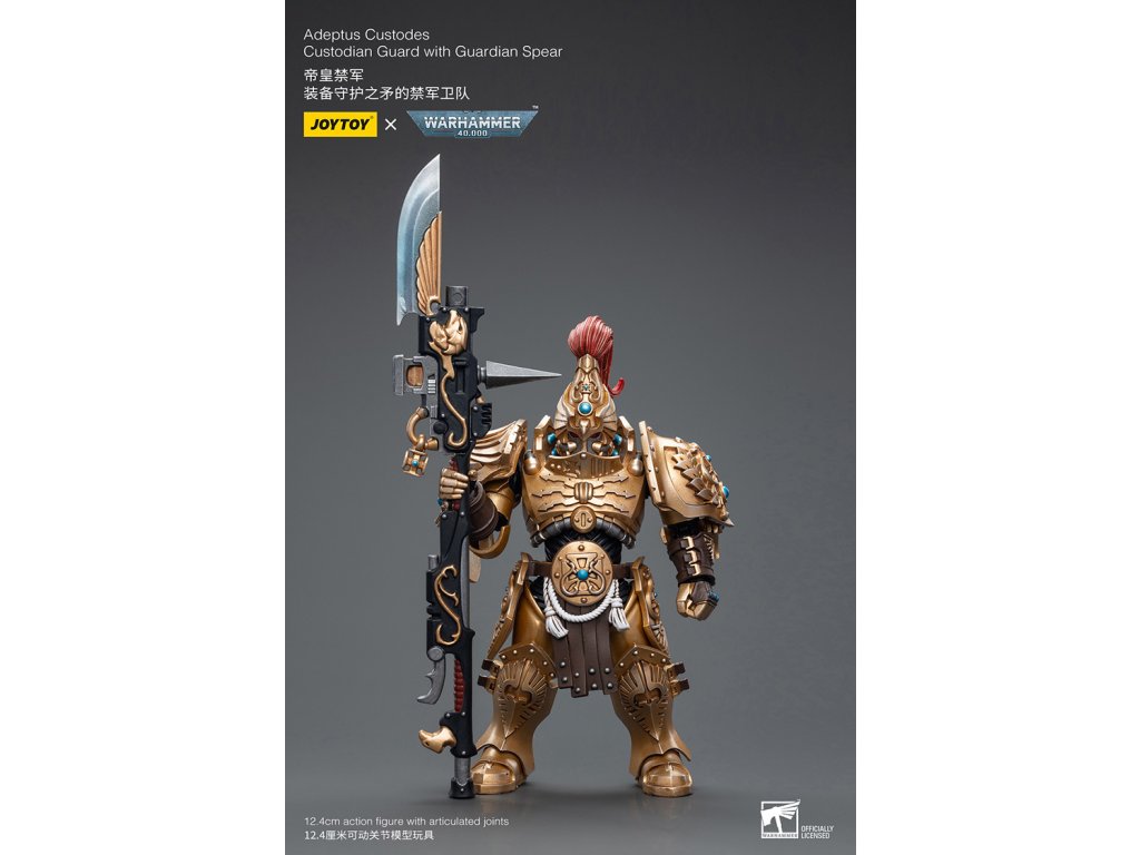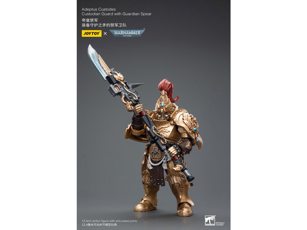 Představujeme akční figurku Joy Toy 1:18 Warhammer 40K Adeptus Custodes Custodian Guard with Guardian Spear - pečlivě zpracovaný sběratelský předmět, který oživuje ikonické Adeptus Custodes v úžasných detailech.